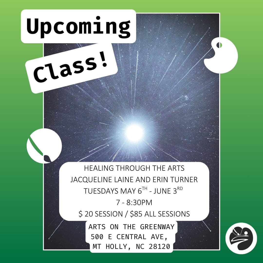 Arts on the Greenway 500 East Central Ave., Mount Holly, NC, United StatesSelf-exploration through Arts and Writing series This five week course offers opportunity to participate in one, some or all of the sessions listed below. The objective of this series is to develop artistic images and writing while learning more about your inner being. We hope that those who attend can bond with one another through…