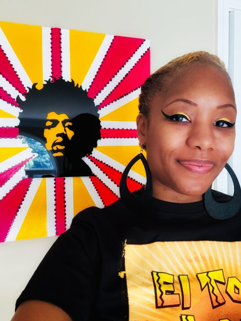 Art has been her passion and love for over 40 years. Inspired at a young age by Vincent Van Gogh, Ernie Barnes, and Milton Glaser she took it upon herself to create and share her art with the world. Working with mixed media and acrylic paints, her favorite art style has become 2 and 3-D pieces. She loves dimension and depth in her work and loves to see art jump off the page. She has become very popular as an artist and business owner, owning the specialty apparel, accessories, and art company Suga Slims LLC.